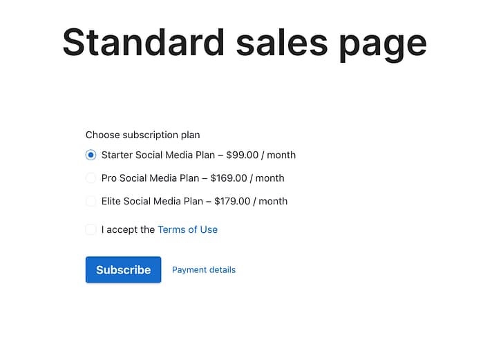 这种设置的伟大之处在于,您的定期付款表格可以添加到 WordPress 中的任何帖子或页面。此外,还有一个很大的好处是,您不需要在您的网站上安装 WooCommerce 或任何其他电子商务插件。